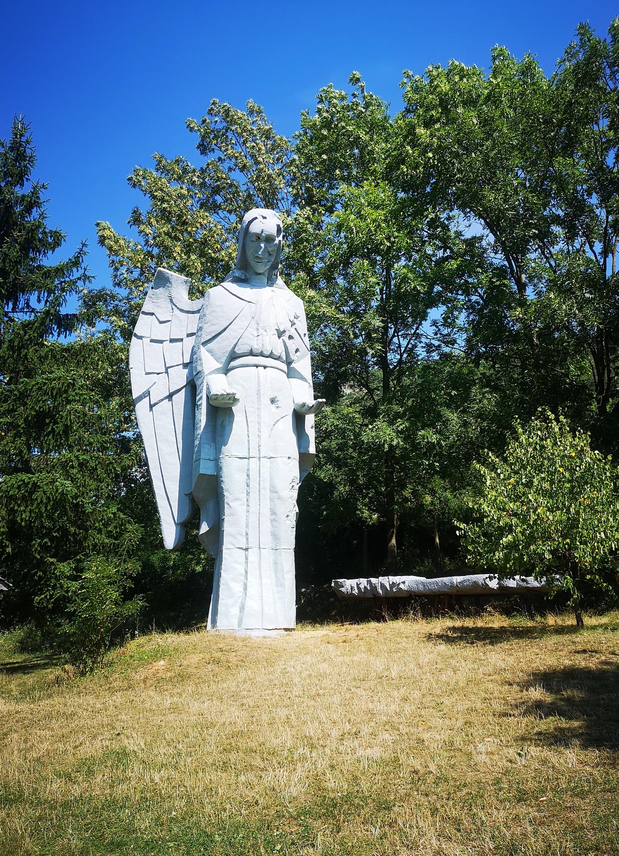 Pri vstupe do obce z južnej strany sa na cintoríne nachádza ďalšia pozoruhodná zaujímavosť – socha obrovského anjela s odlomeným krídlom, ktorá slúžila ako rekvizita pri natáčaní filmu Za nepriateľskou líniou.